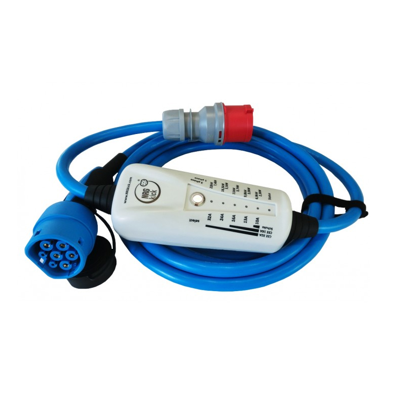 Dispozitiv pentru 32A, 3faze, 22kW, caracteristică RCD Tip B (DC & AC), cablu de 5 sau 7,5 m, conector Mennekes Typ2 și conector 32A CEE.